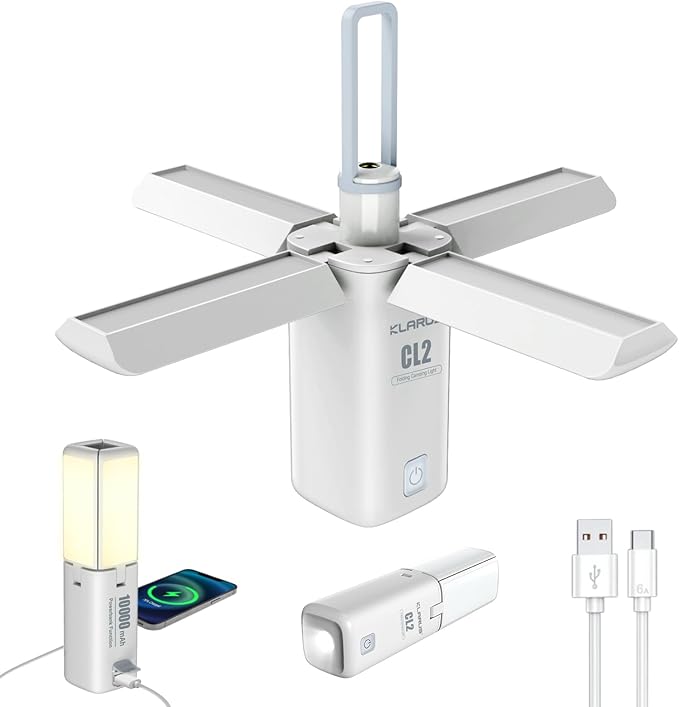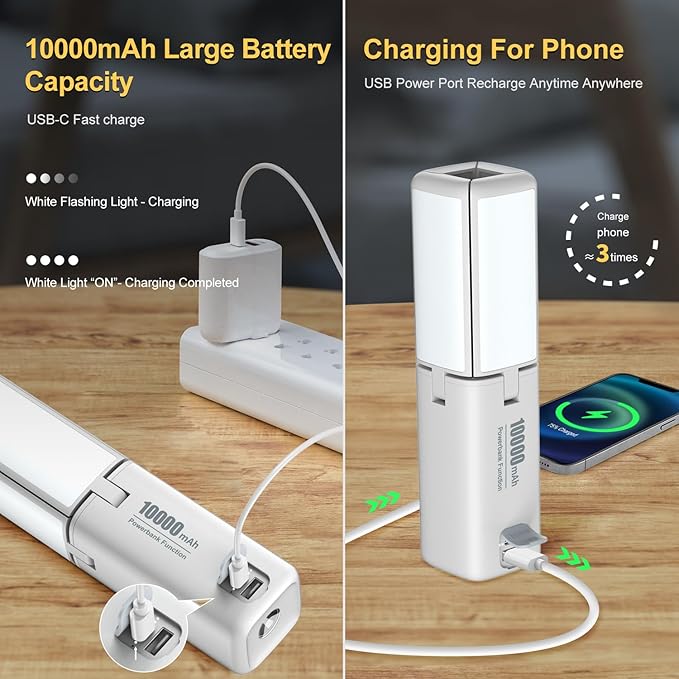 - 【10,000mAh High-Capacity Battery & Rechargeable】 The camping light is rechargeable, featuring a large-capacity internal battery capable of charging your dead phone, keeping you safe and connected. Its ample battery life lets you recharge phones or other USB devices in emergencies.
