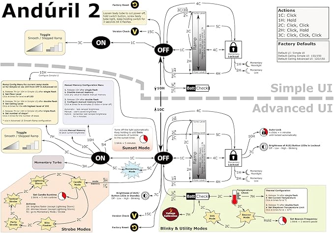- FLEXIBLE LIGHTING MODES: Sofirn Q8 plus has plenty of lighting modes, called Anduril 2.0 UI. It features basic lighting modes like turbo, high, medium, low. For hardcore flashlight users, this ultra bright flashlight provides ways to control the speed and brightness of the strobe, ways to check the battery voltage and temperature, etc. More interesting lighting modes and functions are waiting for your exploration