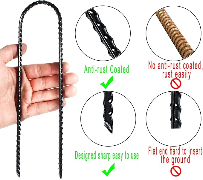 - Designed with spiral surface and sharp ends, with super holding power for easy ground insertion and rugged stakes to suspend, anchor and harness a multitude of items including edging.