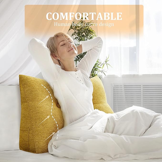Large Triangular Cushion High Back Cushion High Back Cushion Backrest for Bed Perfect as a Cushion for Watching TV and Reading Available in Many Sizes Yellow 80 cm