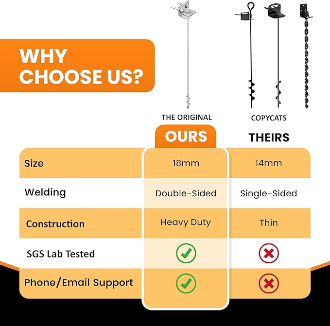 - Don't trust your valuables to cheap, flimsy anchors. You can have peace of mind that high winds won't blow these away.