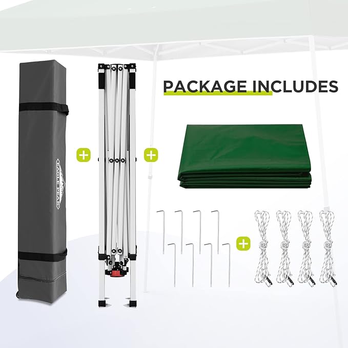 EAGLE PEAK 11x11 Slant Leg Pop-up Canopy Tent Easy One Person Setup Instant Outdoor Beach Canopy Folding Portable Sports Shelter 11' x 11' Base 9' x 9' Top (Green)