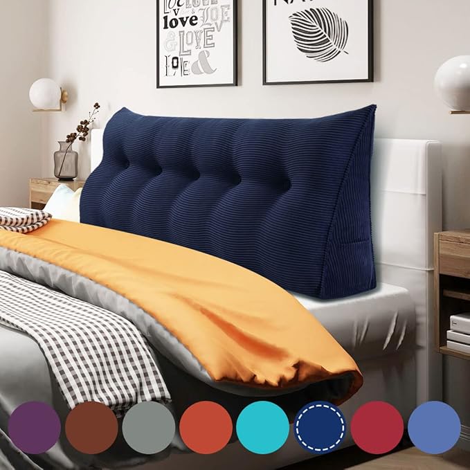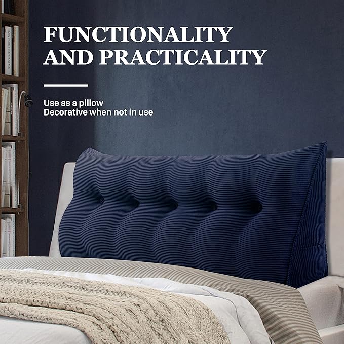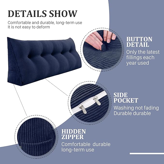 11 lbs Thickened Wedge Pillow Headboard Body Positioner Triangular Reading Pillow Bed Bolster Pillow for Sitting in Bedwith Removable Cover Gift for Mom Backrest Cordury Blue Queen