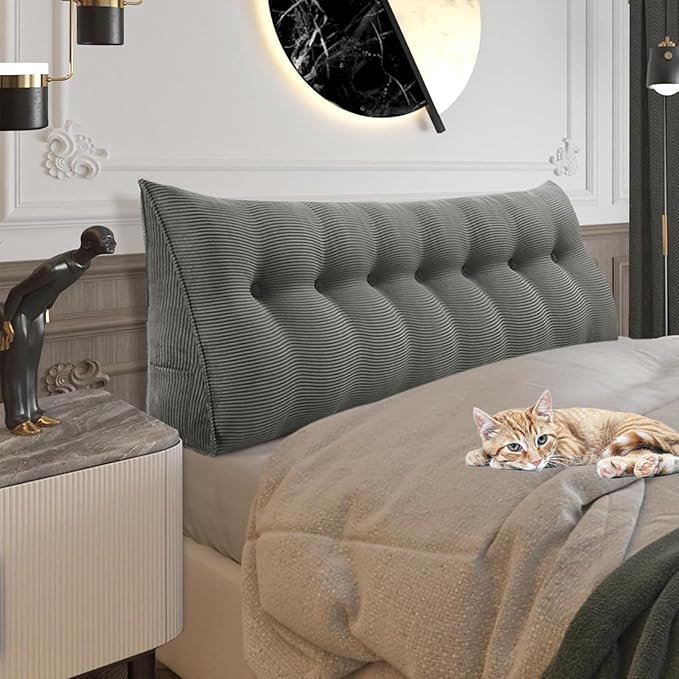14 lbs Thickened King Wedge Pillow Headboard Body Positioner Triangular Reading Pillow Bed Bolster Pillow for Sitting in Bedwith Removable Cover Gift for Mom Backrest Cordury Gray