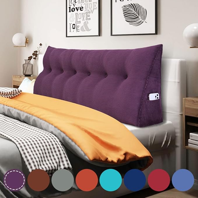 13 lbs Thickened Wedge Pillow Headboard Body Positioner Triangular Reading Pillow Bed Bolster Pillow for Sitting in Bedwith Removable Cover Backrest Purple California King