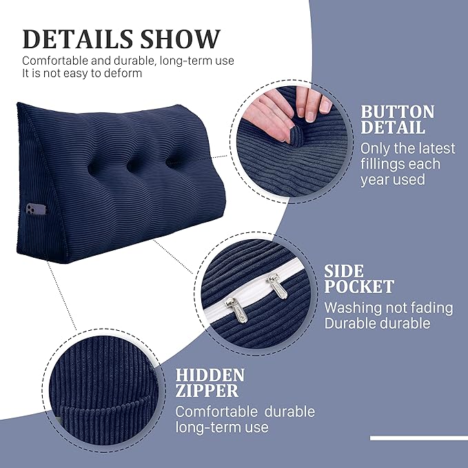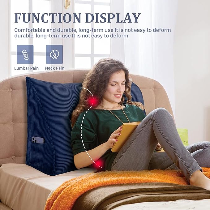 8 lbs Thickened Twin Wedge Pillow Headboard, College Dorm Bed Triangular Reading Pillow, Bed Bolster Pillow for Sitting in Bed, Dorm Bedding Essentials for Girls & Boys, Cordury Blue