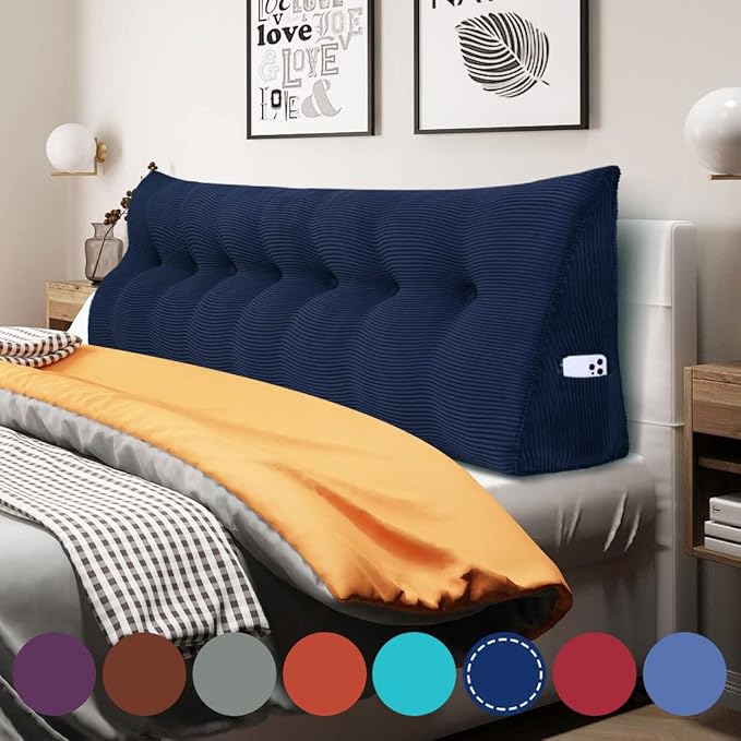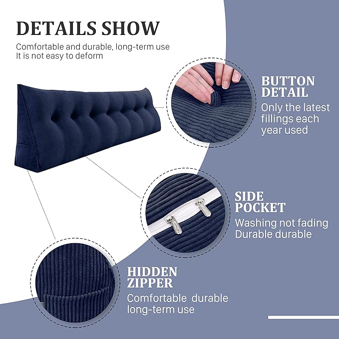 14 lbs Thickened Wedge Pillow Headboard Body Positioner Triangular Reading Pillow Bed Bolster Pillow for Sitting in Bedwith Removable Cover Gift for Mom Backrest Cordury Blue King