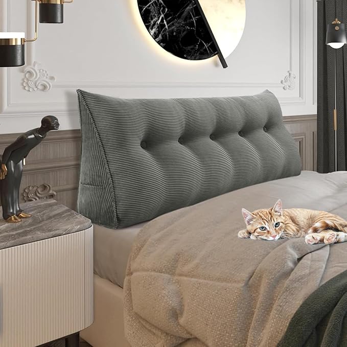 11 lbs Thickened Queen Wedge Pillow Headboard Body Positioner Triangular Reading Pillow Bed Bolster Pillow for Sitting in Bedwith Removable Cover Gift for Dad Backrest Cordury Gray