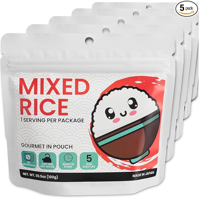 Camping and Backpacking Food | Dehydrated Freeze-Dried Japanese Gomoku Mixed Rice | Emergency Food with 5-year Shelf Life | Made in Japan [5 pack]