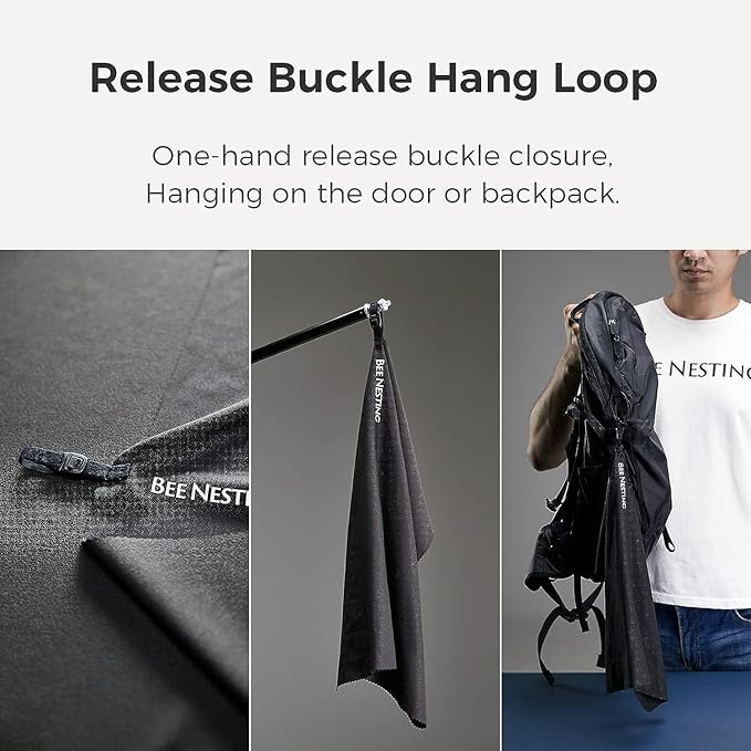 - RELEASE BUCKLE HANG LOOP: With an integrated release buckle closure that doubles as a hanging loop the towels can be hung almost anywhere and they roll up into a packable travel-friendly size making them perfect for anyone who travels light.