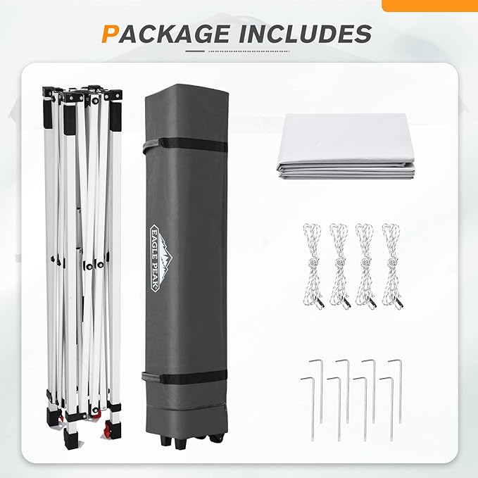 - EAGLE PEAK PROMISE: EAGLE PEAK offers 1-year limited after sale protection from the date of purchase. Unlike many other canopy sellers, EAGLE PEAK offers this for our frames, tops and bags! Please contact our professional service team with any questions