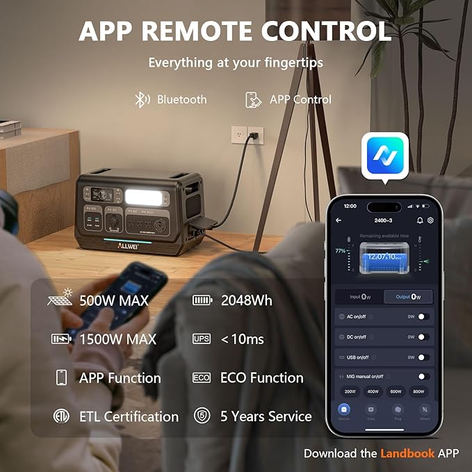 - 【Smart App Function】Smart Remote Control the 2400-3 remotely with ALLWEI Landbook APP via Wi-Fi or Bluetooth for device connection, software update, multiple customized settings, monitor remaining battery.