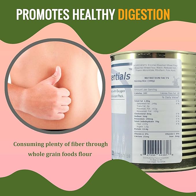 Future Essentials All Purpose White Flour | 100% Natural Whole Grain | Non GMO | Long Term Storage Shelf Stable | Emergency Survival Food Supply, Camping & Backpacking (#2.5 size) 6 Cans