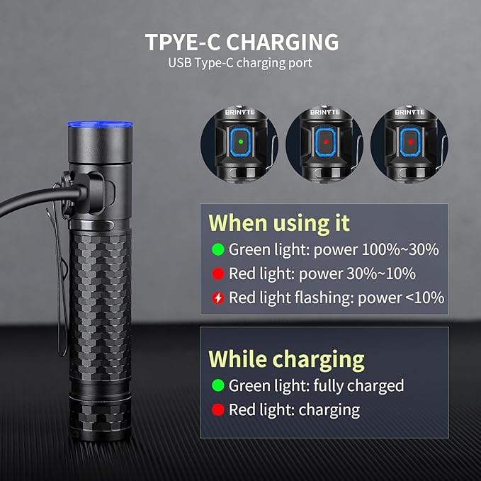 - Type-C Rechargeable: The USB Type-C charging allow for versatile charging options. It offers a long-lasting runtime of up to 220 hours. Your reliable tool for outdoor activities, such as hiking, camping, dog walking, fishing, night running, mountaineering, hunting, and emergencies etc.