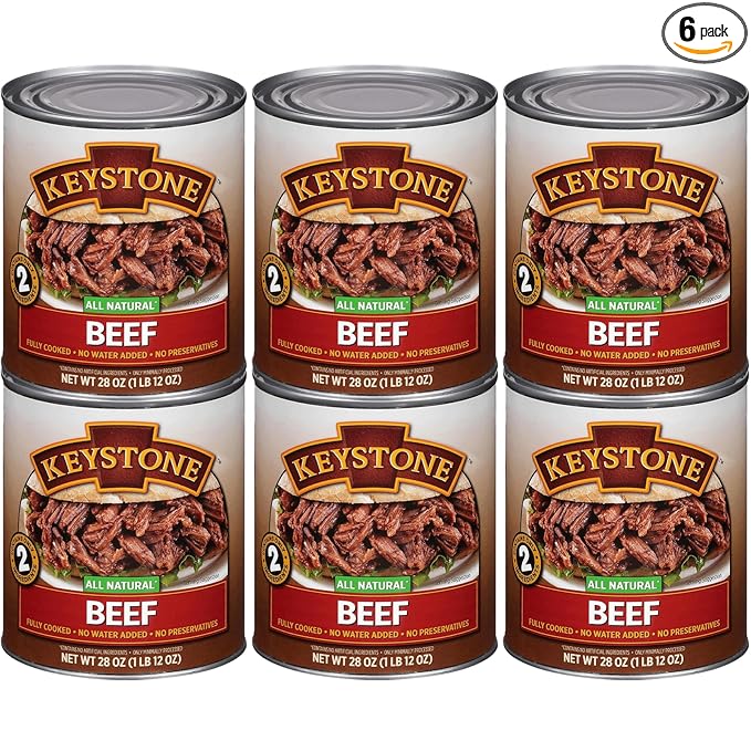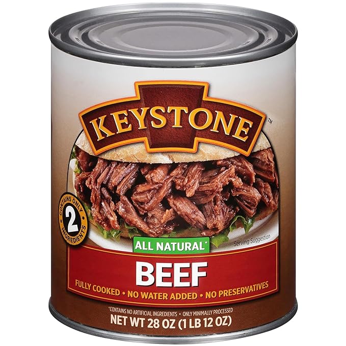 Keystone Meats All Natural Heat and Serve Canned Beef 28 oz – Fully Cooked Canned Meat – Ready to Eat – 5-Year Shelf Life – Pantry Staple for Everyday Meals, Emergency Survival Food – Made in USA – Pack of 6