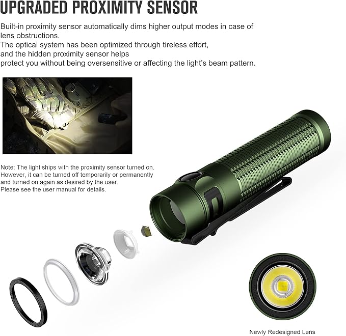 - [Upgraded Proximity Sensor] The optical system has been optimized, allowing the hidden proximity sensor to help protect you without being oversensitive or affecting the light's beam pattern