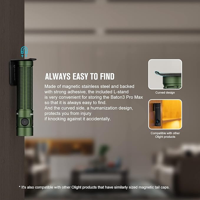 - [Convenient to Store] The included L-shape stand can be stuck anywhere and makes the compact flashlight easier for you to store the flashlight wherever is most convenient