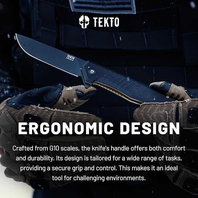 - ERGONOMIC HANDLE DESIGN: The knife's handle, made from G10 and Carbon Fiber, is designed for comfort and durability. Suitable for various outdoor tasks, it ensures a stable grip and control, making it an ideal tool for challenging environments.