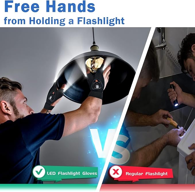 - Widely Application: The rechargeable flashlight gloves can be a wonderful gift on Christmas, anniversary, Valentine's or birthday for fishermen, handymen, plumbers, car lovers, electricians, engineers, night running and hiking lover, maintenance workers