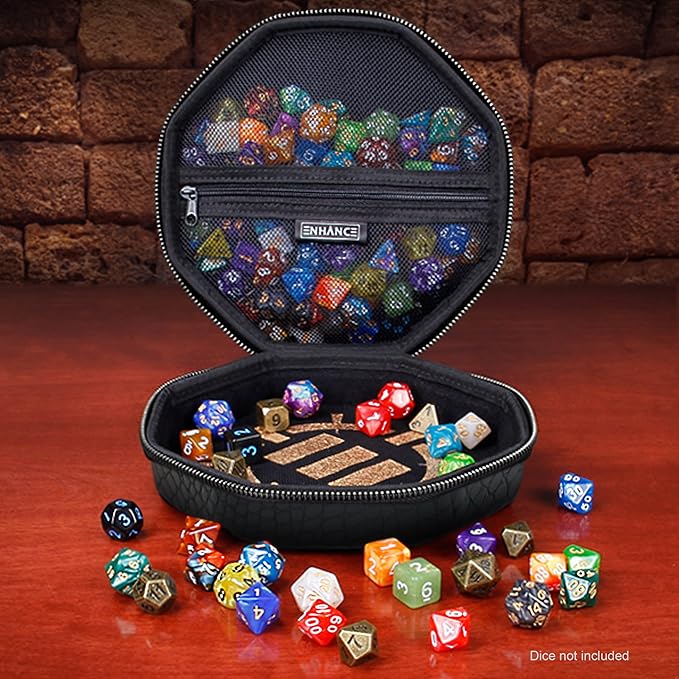 ENHANCE DND Dice Tray and Case - Collector's Edition DND Dice Holder up to 150 D&D Shakers with Hard Shell Exterior and Protective Soft Interior - Rolling Tray Perfect for Game Night (Dragon Black)