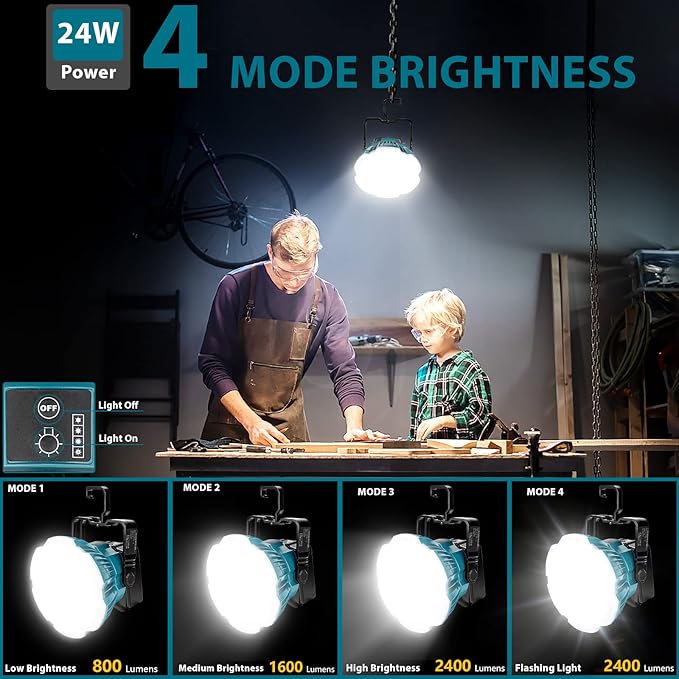 LED Camping Lantern for Makita 18v Li-ion Battery, 24W 2400LM LED Work Light Portable Tent Light Flashlight for Camping, Car Repairing, Hiking, Fishing, Hurricane, Emergency