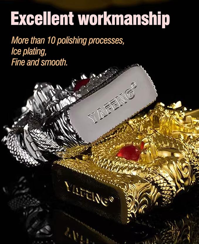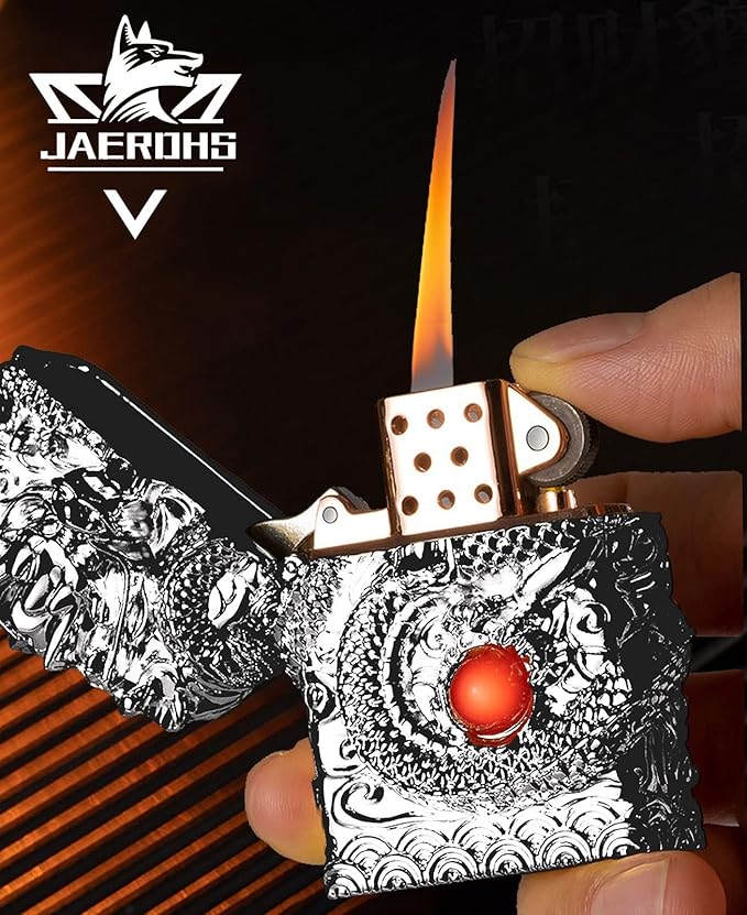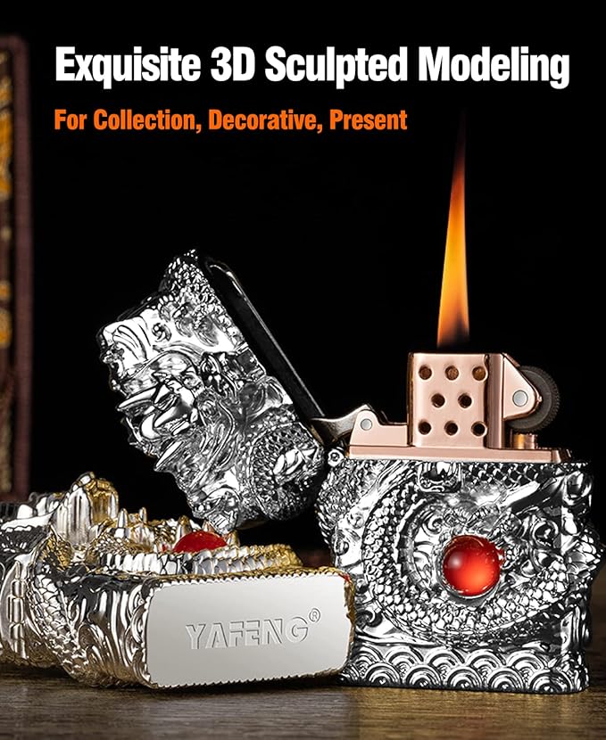 - 【 Cool Lighter 】 This kerosene dragon lighter uses 3D engraving technology, excellent processing technology, smooth touch. It is not only a lighter, but also an exquisite craft. It can be used as a collection on tables, cabinets, offices and other occasions.