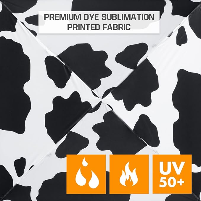 EAGLE PEAK 10x10 Slant Leg Pop-up Canopy Tent Easy One Person Setup Instant Outdoor Beach Canopy Folding Portable Sports Shelter 10x10 Base 8x8 Top (Cow Print)
