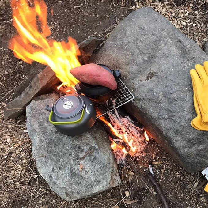 2Peices Backpacker Bushcraft Grill Grate Stainless Steel BBQ Cooking Grill Mesh Campfire Grill Square Round for Camping, Backpacking, Hunting Fishing