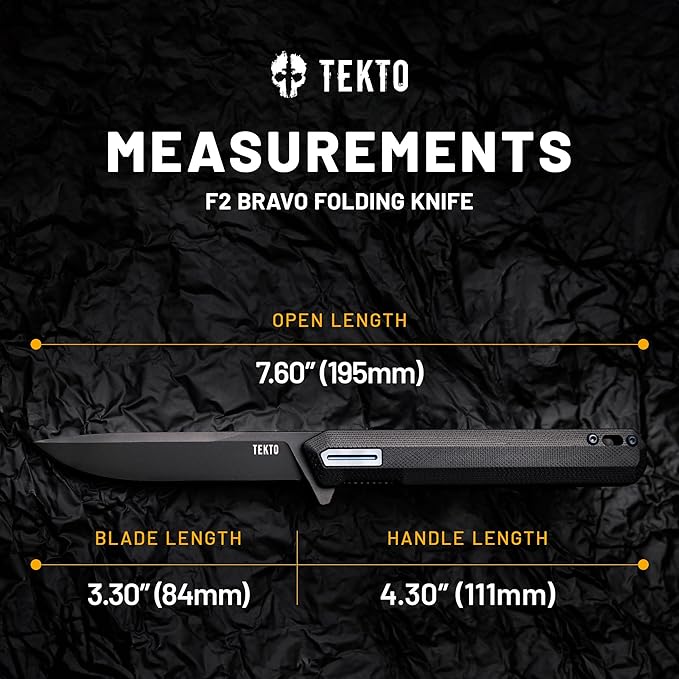 - VERSATILE FUNCTIONALITY: Engineered for convenience, this folding knife boasts left-handed compatibility, a swift flip mechanism, and an auto mini-lock for added safety. Whether camping or navigating everyday tasks, the TEKTO F2 Bravo is your reliable, portable companion.