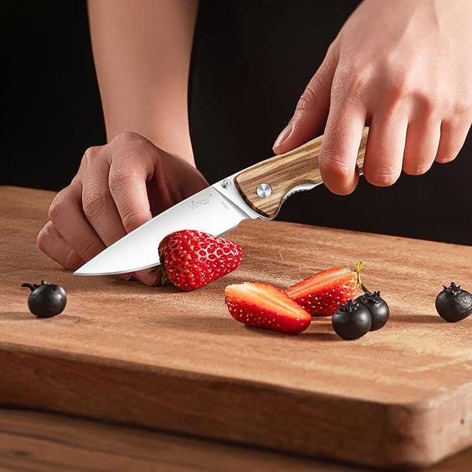 Vickay Pocket Knife for Men, Folding Knife with Clip, 3.74" 8Cr13MoV Steel Blade, Wood Handle EDC Knife for Outdoor Camping,Tactical, Hunting and Fishing Gift (Zebrawood)