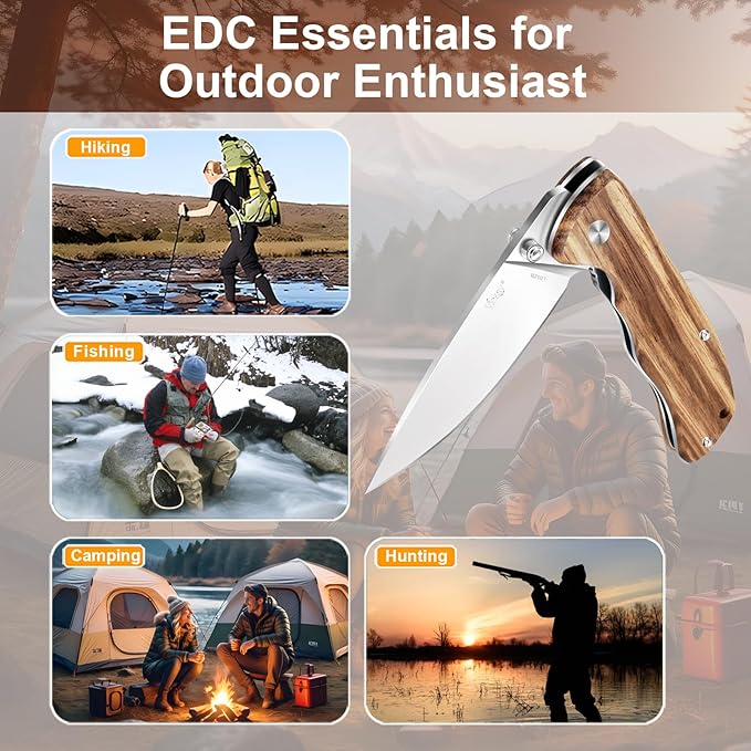 - EXQUISITE ERGONOMICS HANDLE--Made of high-quality natural zebrawood which brings you comfortable and perfect anti-slip grip, and the wood handle with excellent workmanship provides exquisite look and upscale texture, so this folding pocket knife is the best gift for men and women