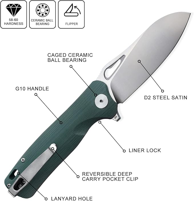 - 【Smooth Running Pocket Knife】The internal structure of the knife has been carefully designed. The high-strength liner with ceramic ball bearings gives you a smooth running experience. The high-strength liner prevents the knife from deforming and allows you to use the knife in any way you want in your job. It is flipper for opening.