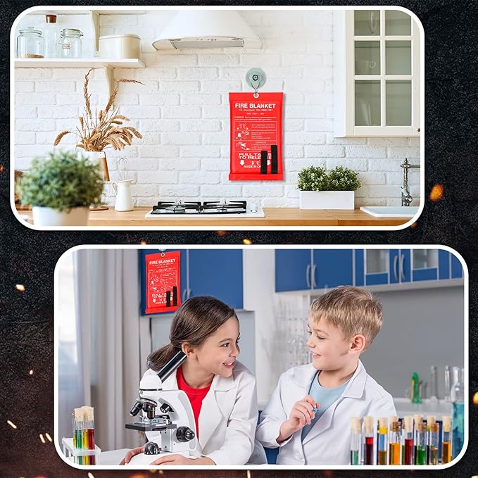 - Easy to Use: pull down tabs on the fire proof blanket, spread the blanket to cover the fire, let the emergency fire blanket sit there for a few seconds to suffocate the fire, turn off the stove or other heat source, and wait for the blanket to cool before throwing it away