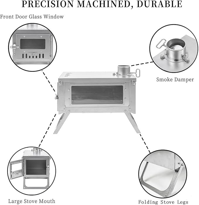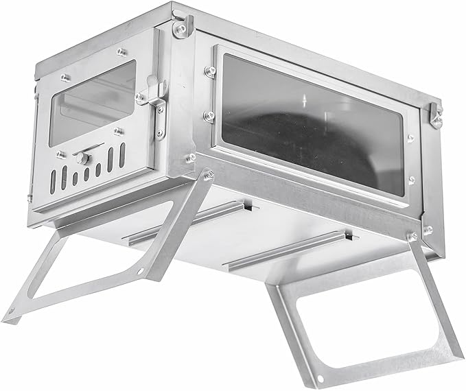 - GLASS WINDOW - The transparent glass window on one side can observe the fuel combustion in the camping stove, and it is convenient to add fuel in time.