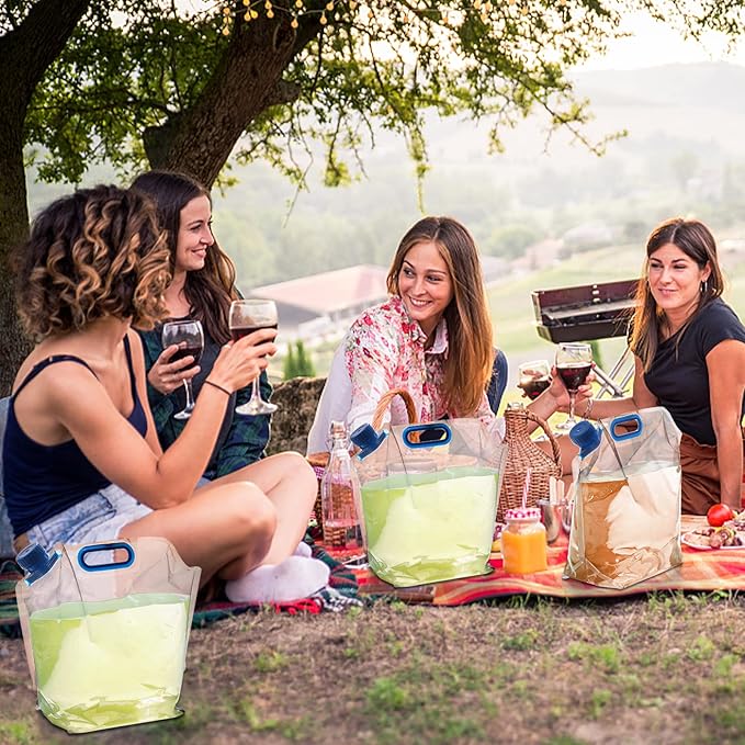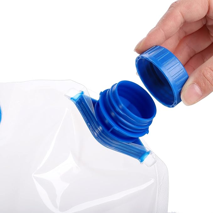 - Innovative Design: Features a portable handle that is convenient to carry and will not hurt your hand. And a large 1.6 inch bottle mouth for effortless filling and pouring. Unlike ordinary water bags, the screw-on cap provides a leak-proof seal. Designed with a reinforced wide base bottom so it won't tip over.