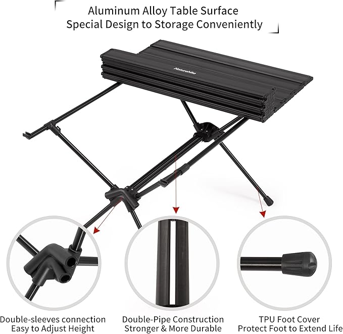 Naturehike FT11 Height Adjustable Camping Table, Ultralight Aluminum Roll Up Table with Carry Bag, Portable Backpacking Camp Table for Hiking Picnic Fishing Beach