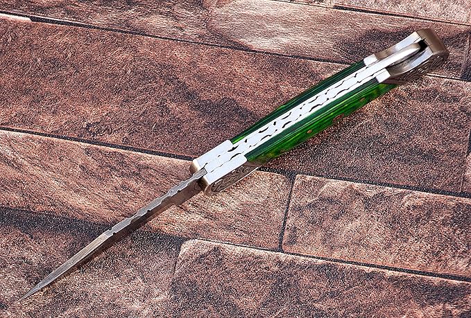 - 4.25" Hand Forged Damascus steel blade. 5 Inches folded length Equipped with strong back locking system