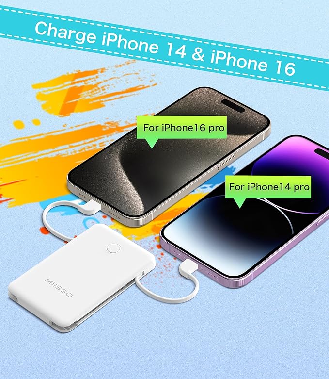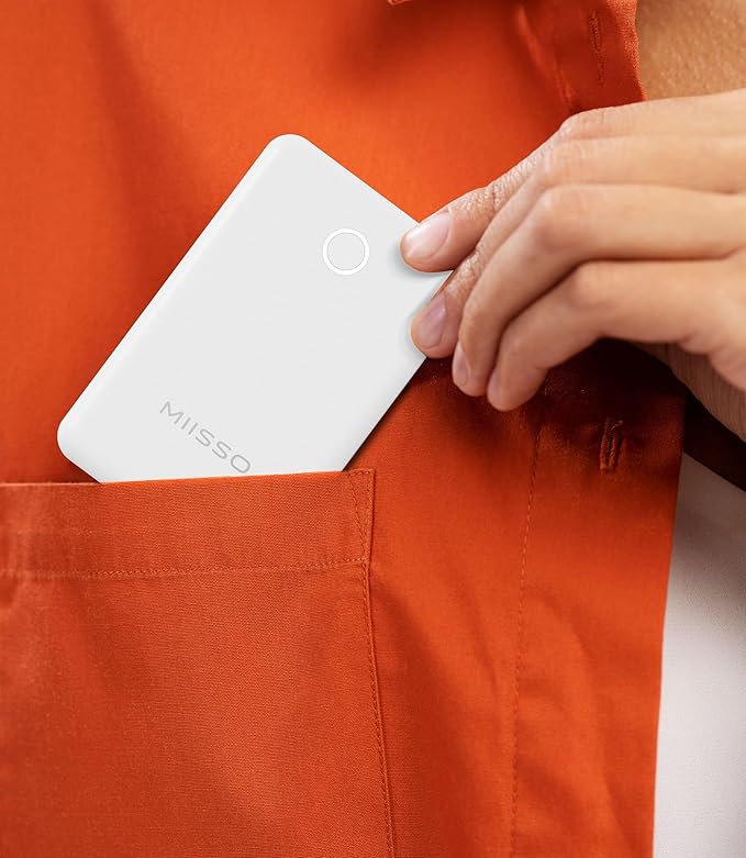 - Credit Card Size: It is the slimmest and the smallest of MIISSO portable chargers with cables, only 0.27lb(122g) and its body like a credit card. The lightweight design lets you take it out without pressure. It's slim enough to put it in your pocket or in your handbag