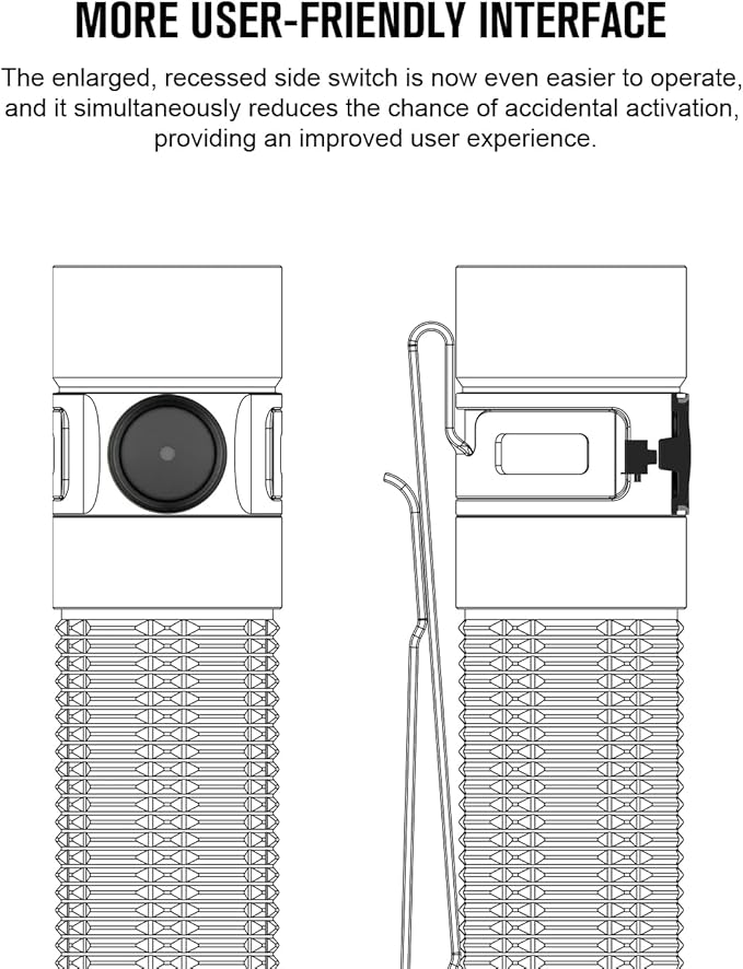 - [More User-friendly Interface] The enlarged and recessed side switch is now even easier to operate while simultaneously reducing the chance of accidental activation, providing an improved user experience