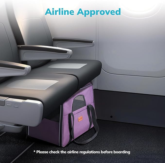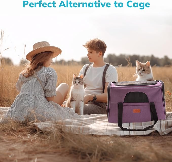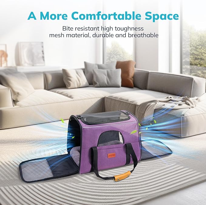 Morpilot Cat Carrier - Soft Sided Cat Carrier Large for Big Medium Cats and Puppy up to 18lbs, Pet Carrier with Safety Zippers, Foldable Bowl, Airline Approved Large Dog Carrier - Purple