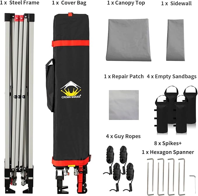 - STO’ N GO SYSTEM - Our lift-free system makes collapsing, storing, and transporting the 8x8 tent a breeze. The 8x8 tents can be stored with the fabric attached, with a specialized pocket for 4 sandbags, 8 stakes, and 4 guy ropes. Integrated wheels in the feet allow easy movement even when the instant shelter tent is set up, by simply lifting the side without wheels. This feature is especially useful for quick setup and takedown at locations like the patio or sports events