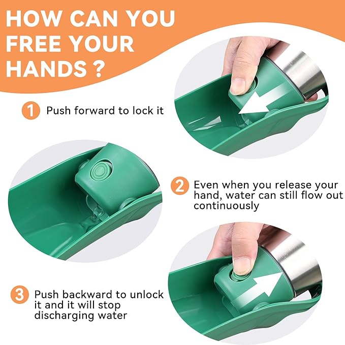 - Durable Food-Grade Material: Made with high-quality stainless steel and BPA-free PP plastic, our dog water bottle is odorless and safe for your furry friend's health. Drop-resistant and designed to last, our dog water bottle is suitable for any adventure.