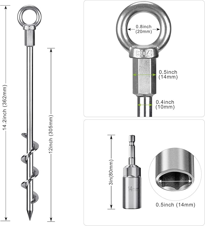- 【Easy Installation】Comes with a 14mm socket, quickly screw these metal anchors into the ground using a drill. Install them in just minutes, saving time and effort
