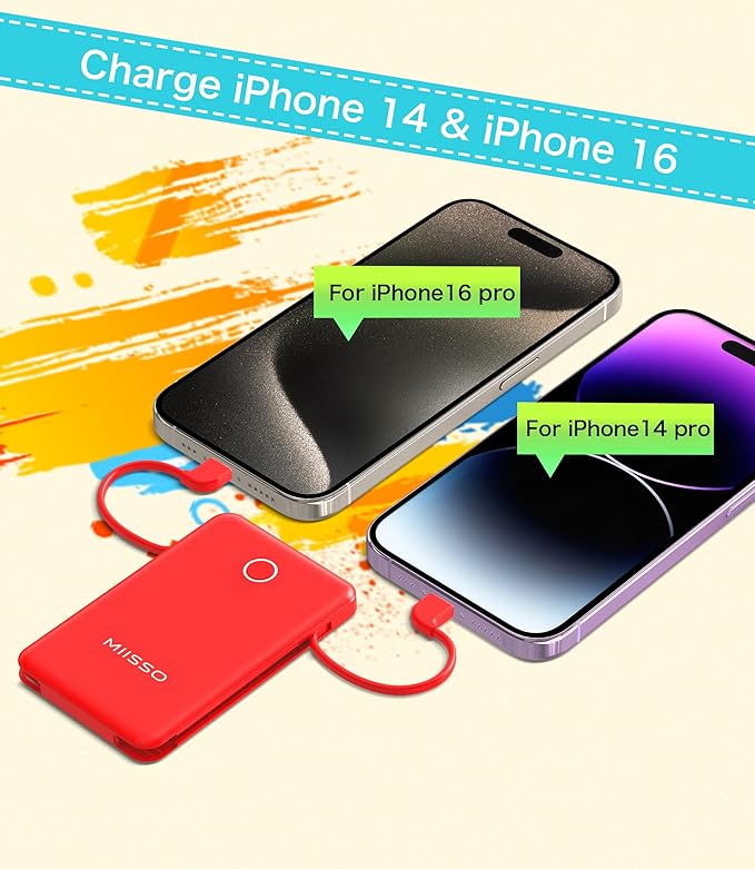 - Credit Card Size: It is the slimmest and the smallest of MIISSO portable chargers with cables, only 0.27lb(122g) and its body like a credit card. The lightweight design lets you take it out without pressure. It's slim enough to put it in your pocket or in your handbag.