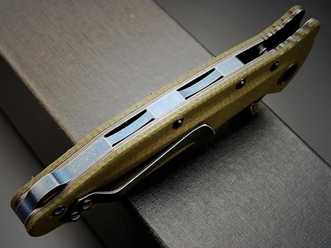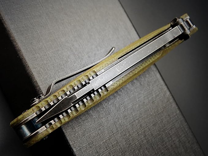 - 😍 Non-Slip Micarta Handle Knife: Micarta is a composite material made from linen cloth makes extremely durable grips, with all-natural rough texture which offers a good grip during use. Ball bearing design offers one-handed operation, lock securely into place with a stainless steel liner lock.