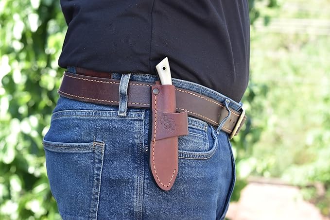 Knives Ranch 7" Hunting Knife, EDC Fixed Blade - Bone Handle and Heavy Duty Horizontal/Vertical Carry Sheath (3128-B)