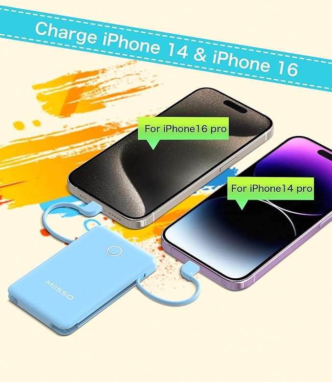 - Credit Card Size: It is the slimmest and the smallest of MIISSO portable chargers with cables, only 0.27lb(122g) and its body like a credit card. The lightweight design lets you take it out without pressure. It's slim enough to put it in your pocket or in your handbag