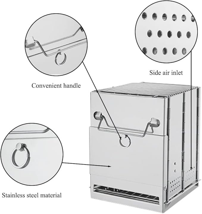 - ★★【MATERIAL】-- Crafted with high quality stainless steel, not easy to deform, to ensure long-term use. With excellent wind resistance, it can provide efficient heat collection. Airflow holes and a mortar board that separates carbon and dust help the charcoal burn efficiently.