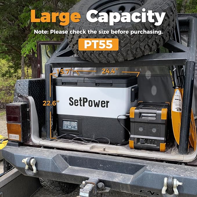 Setpower PT55 Car Refrigerator With AC Adapter,Dual Zone Portable Freezer Fridge Electric Cooler,55L Portable Car Fridge,12 Volt Refrigerator for Car Camping, RV, Truck,Vehicles,Travel,3-YEAR Warranty