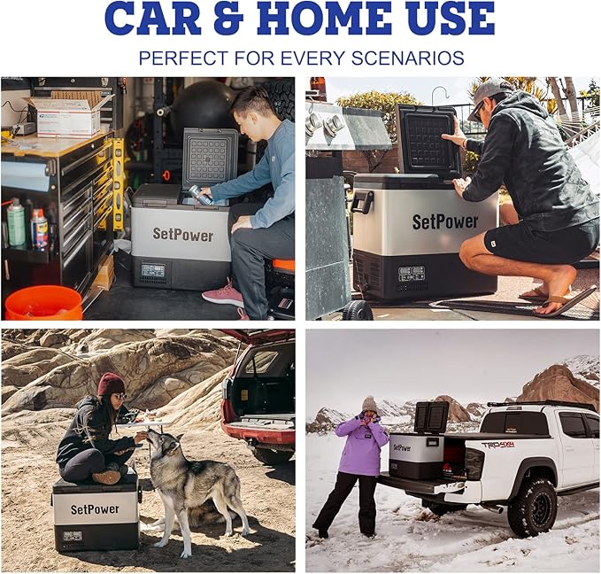 - Dual Zone And Dual Temperature Control Electric Cooler: Setpower 12 Volt Refrigerator is equipped with a "true dual zone design" to avoid flavor transfer and mutual contamination of food between the two zones.And,this portable freezer can be independently controlled from 50°F to 0°F via the LCD panel.You can get a refrigerator and a freezer at the same time